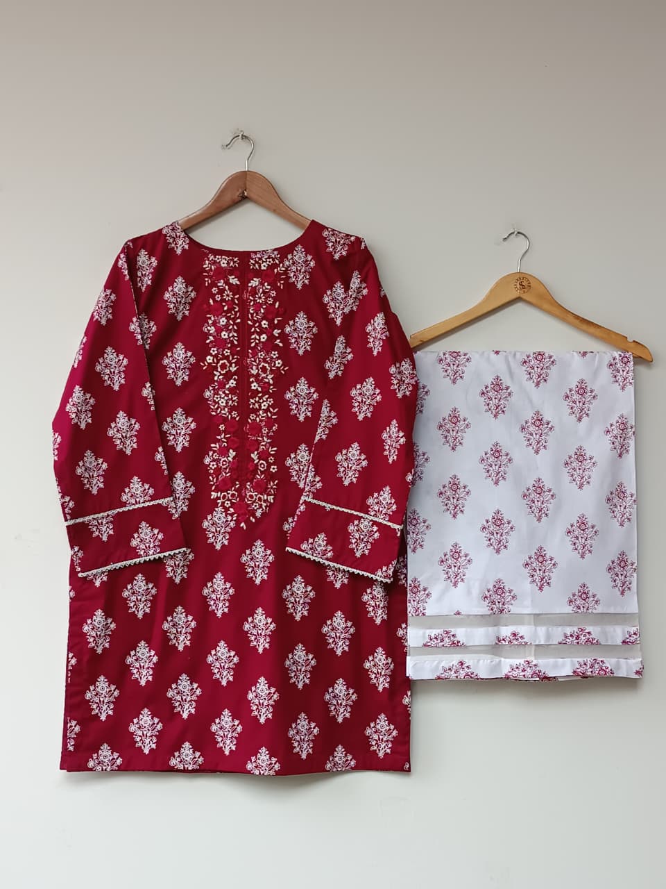 #lubanastore #2pcsuit #casualwear #womencollection #summercotton #blockprint #embroidered #organzapatch #necklinework #pakistanfashion
